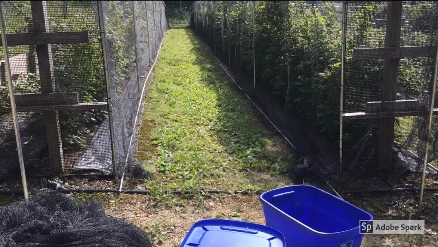 Yards and yards of bird netting. Made harvesting very time consuming and difficult.