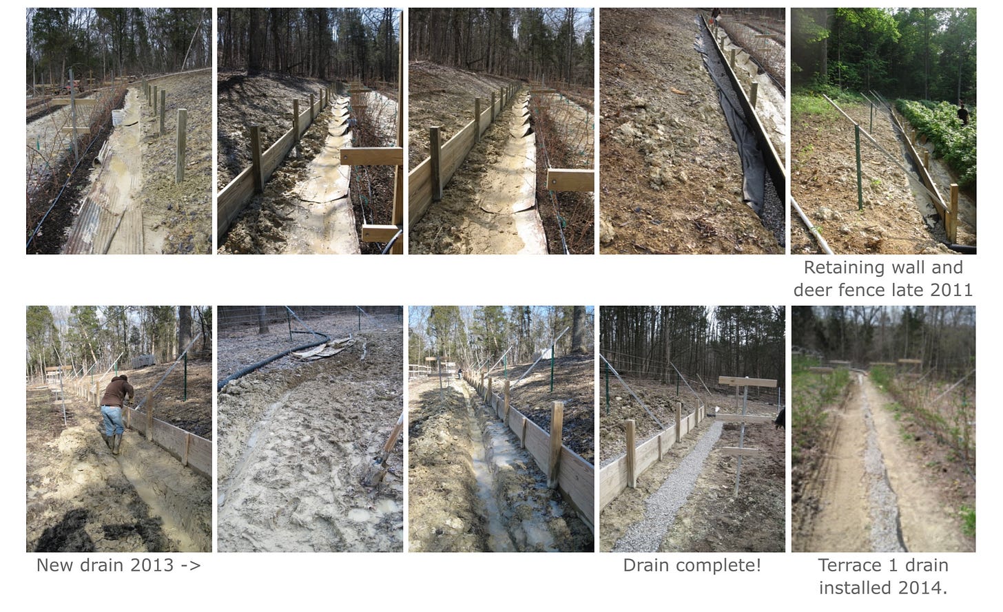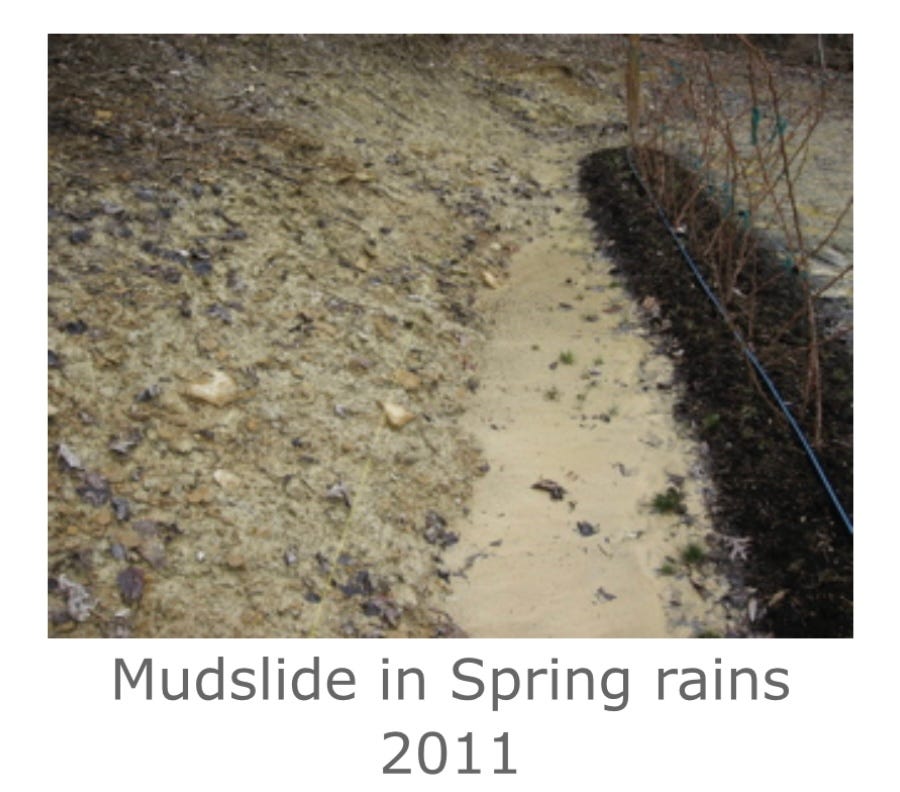 As our field was cut into a wooded slope and terraced, we experienced a pretty awesome mudslide in the upper side of the field. We knew eventually we'd have to deal with the issue, rain in 2011 forced the issue.